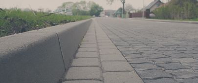 Устройство бордюрных камней, «заподлицо» с мощением